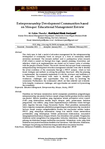 Entrepreneurship development communities based on mosque: educational management review.