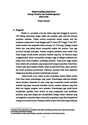 Lebih-lebih jika pertanyaan diperlebar menjadi kapan sebuah penelitian disebut sebagai Studi Kasus dan apa pula ciri-cirinya, mahasiswa tampak semakin kebingungan, sehingga terkesan memilih Studi Kasus sebagai strategi penelitian hanya karena mengikuti teman-teman lain, tanpa pemahaman yang cukup. Akibatnya tujuan akhir Studi Kasus untuk memperoleh pengetahuan yang mendalam tentang tema atau topik yang dikaji tidak tercapai, sehingga pekerjaan penelitian itu sia-sia. Padahal, waktu, tenaga, pikiran, dan uang telah banyak dikeluarkan untuk kegiatan tersebut. Tulisan ini akan membahas tentang konsep dan strategi melakukan penelitian Studi Kasus, agar penelitian dapat dilakukan secara efektif.