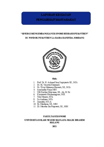 Sinergi mengembangkan ekonomi berbasis pesantren melalui optimalisasi manajemen keuangan di Pesantren Madrasah Aliyah Al-Qur'an La Raiba Hanifida Jombang.