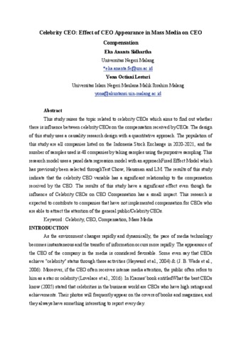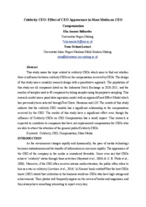 This study raises the topic related to celebrity CEOs which aims to find out whether there is influence between celebrity CEOs on the compensation received by CEOs. The design of this study uses a causality research design with a quantitative approach. The population of this study are all companies listed on the Indonesia Stock Exchange in 2020-2021, and the number of samples used is 48 companies by taking samples using thepurposive sampling. This research model uses a panel data regression model with an approachFixed Effect Model which has previously been selected throughTest Chow, Hausman and LM. The results of this study indicate that the celebrity CEO variable has a significant relationship to the compensation received by the CEO. The results of this study have a significant effect even though the influence of Celebrity CEOs on CEO Compensation has a small impact. This research is expected to contribute to companies that have not implemented compensation for CEOs who are able to attract the attention of the general public/Celebrity CEOs.