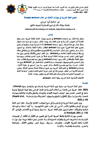 Hikmah, Nurul and Herawati, Erna (2023) Ta'lim al-Lughah al-'Arabiyah fi Maharat al-Kitabah min khilal Google Jambord. Presented at Pertemuan Ilmiah International Bahasa Arab, 6-8 Sep 2023, Lombok.