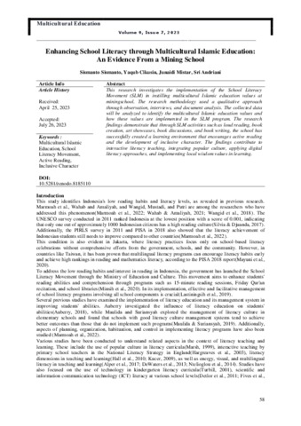 Enhancing school literacy through multicultural Islamic education: An evidence from a mining school.