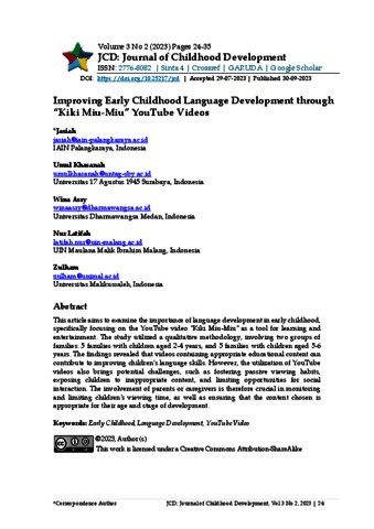 This article aims to examine the importance of language development in early childhood, specifically focusing on the YouTube video "Kiki Miu-Miu" as a tool for learning and entertainment. The study utilized a qualitative methodology, involving two groups of families: 5 families with children aged 2-4 years, and 5 families with children aged 5-6 years. The findings revealed that videos containing appropriate educational content can contribute to improving children's language skills. However, the utilization of YouTube videos also brings potential challenges, such as fostering passive viewing habits, exposing children to inappropriate content, and limiting opportunities for social interaction. The involvement of parents or caregivers is therefore crucial in monitoring and limiting children's viewing time, as well as ensuring that the content chosen is appropriate for their age and stage of development.