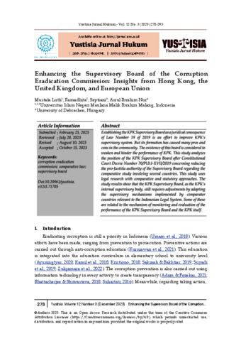 | Keywords: | corruption eradication commission; comparative law; supervisory board |