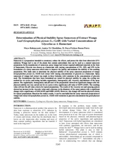| Keywords: | Cosmetics; Cycling test; Glycerin; Spray sunscreen; Wungu leaves |