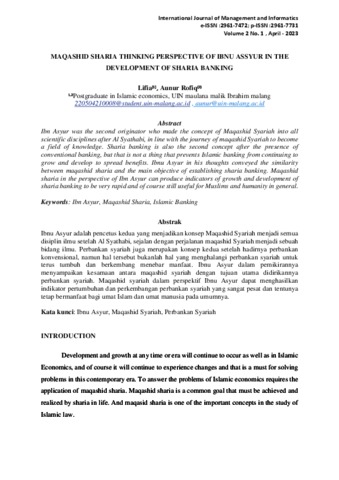 | Keywords: | Ibn Asyur; Maqashid Sharia; Islamic Banking |