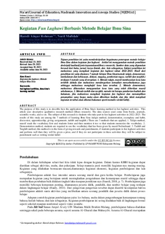 | Keywords: | Kegiatan fun lughawi; Metode belajar Ibnu Sina |