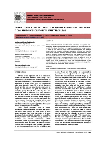 | Keywords: | Quran perspective; street concept; street problems; comprehensive |