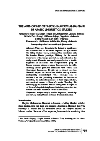 The authorship of Shaykh Nawawi Al-Bantani in Arabic linguistics studies.