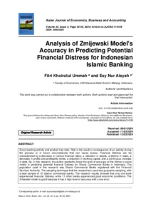 | Keywords: | Financial distress; Zmijewski model; Sharia commercial banks; credit risk; Indonesia |
