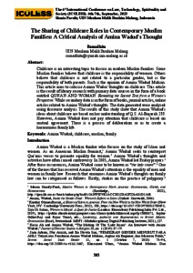 hildcare is an interesting topic to discuss in modern Muslim families. Some Muslim families believe that childcare is the responsibility of women. Others believe that childcare is not related to a particular gender, but is the responsibility of both parents. Such is the opinion of Amina Wadud Muhsin. This article aims to criticise Amina Wadus' thoughts on childcare. This article is the result of library research with primary data sources in the form of a book entitled QUR'AN AND WOMAN: Rereading the Sacred Text from a Woman's Perspective. While secondary data is in the form of books, journal articles, online articles related to Amina Wadud's thoughts. The data generated were analysed using discourse analysis. The results of this study show that Amina Wadud's ideas about childcare are based on her understanding of Q.S. Al-Baqarah 233. However, Amina Wadud does not pay attention that childcare is based on mutual agreement. There is a process of deliberation so as to create a harmonious family life.