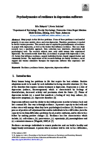 | Keywords: | Resilience; resilience factors; depression; depression sufferer |