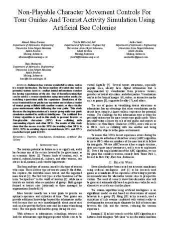 Non-Playable Character Movement Controls for tour guides and tourist activity simulation using artificial bee colonies.