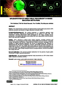Purpose: This study attempts to present the Implementation of green public procurement (GPP) along with obstacles and solutions in Higher Education Institutions (HEIs)