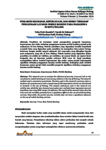 Pengaruh keamanan, kepercayaan, dan risiko terhadap penggunaan layanan mobile banking pada mahasiswa di Kota Malang.