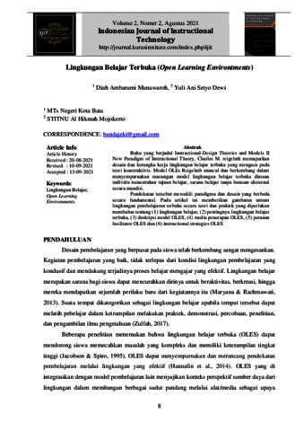 | Keywords: | Lingkungan Belajar; Open Learning Environments |
