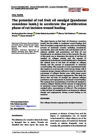 The potential of red fruit oil emulgel (Pandanus conoideus Lamk.) in accelerate the proliferation phase of rat incision wound healing.