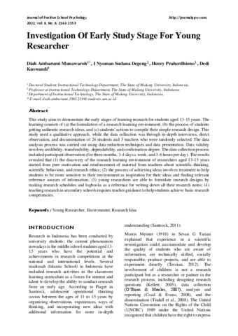 Investigation of early study stage for young researcher.