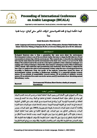 | Keywords: | Environmental Wisdom; Short Stories; shodiq al-yarqaat; Ecocriticism |