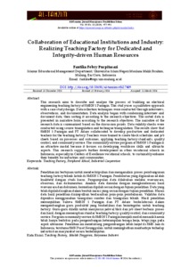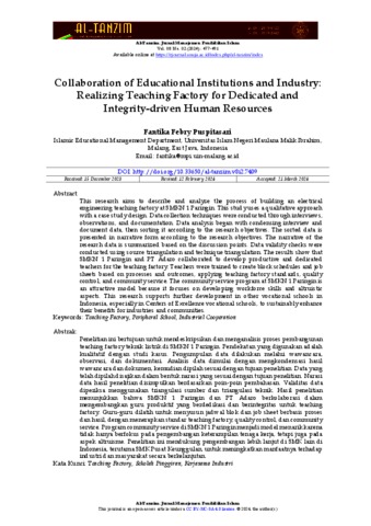 Puspitasari, Fantika Febry (2024) Collaboration of educational institutions and industry: Realizing teaching factory for dedicated and integrity-driven human resources. Al-Tanzim: Jurnal Manajemen Pendidikan Islam, 8 (2). pp. 477-491. ISSN 25493663 (p.); 25495720 (e.)