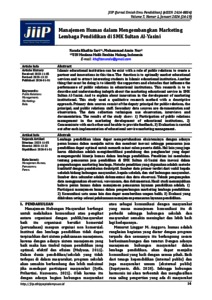 Lembaga pendidikan islam dapat mempertahankan eksistensinya dengan adanya peran humas dalam menjalin mitra dan membuat inovasi sehingga pemasaran jasa pendidikan dapat optimal untuk menarik minat calon peserta didik. Hal lain yang juga harus dilakukan adalah mengidentifikasi pendukung dan penghambat yang dapat mempengaruhi kinerja humas dalam lembaga pendidikan. Penelitian ini membahas tentang pemasaran jasa pendidikan di SMK Sultan Al-Yasini dan inovasi dalam pengembangan marketing lembaga. Metode penelitian yang digunakan adalah metode kualitatif dengan pendekatan deskriptif. Sumber data primer terdiri dari wakil kepala sekolah bidang hubungan masyarakat, kepala sekolah, dan staf hubungan masyarakat. Sumber data sekunder adalah dokumentasi dan data observasi. Teknik pengumpulan data menggunakan observasi, wawancara, dan dokumentasi. Hasil studi menunjukkan bahwa peran humas dalam manajemen pemasaran layanan pendidikan adalah, 1) Partisipasi manajemen humas dalam pengembangan marketing lembaga pendidikan; 2) Komunikasi satu sama lain dan dapat memberikan umpan balik; 3) Evaluasi yang dilakukan setiap selesai pelaksanaan manajemen pemasaran layanan pendidikan.