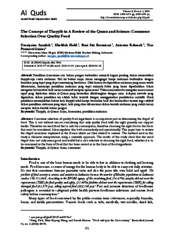 Consumer selection of quality food ingredients is an important part in determining the thayyib of food. This is not without reason considering that only quality food with the right quantity can support health. Therefore we need food that is safe for consumption, therefore choosing the right food is the focus that must be considered. Islam regulates this both normatively and operationally. This paper tries to review the thayyib narrations explained in the Koran which are then related to science. The method used in this study is thematic interpretation using a scientific approach. The results of the study show that the word thayyib does not only mean good and useful but is also selective in choosing the right food, whether it is to be consumed in the form of food that has been served or in the form of food ingredients.