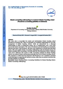 Islamic accounting anthropology to construct Islamic boarding school (Pesantren) accounting guidelines in Indonesia.