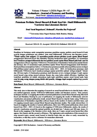 Pemetaan perilaku moral hazard di bank syari'ah: Studi bibliometrik VOSviewer dan literature review.
