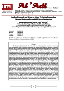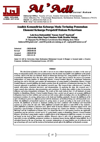 Rahmatullah, Lalu Kesa, Zenrif, Fauzan and Supriyadi, Supriyadi (2024) Analisis kemandirian keluarga muda terhadap pemenuhan ekonomi keluarga perspektif hukum perkawinan. Al 'Adl: Jurnal Hukum, 16 (1). pp. 17-40. ISSN 24770124