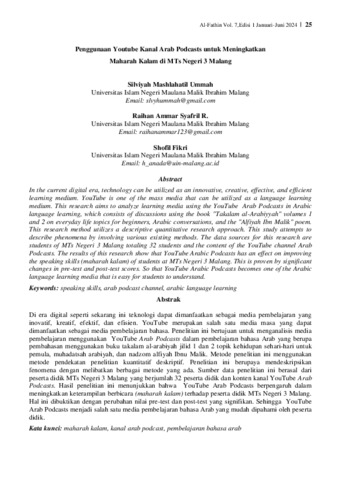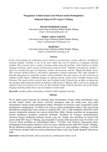 Penggunaan Youtube kanal Arab Podcasts untuk meningkatkan maharah kalam di MTs Negeri 3 Malang.