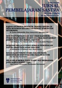 Pandemi Covid-19 membuat pola belajar yang sebelumnya terjadi secara tatap muka berubah menjadi pembelajaran daring. Salah satu media yang bisa digunakan agar STPPA (Standar Tingkat Pencapaian Perkembangan Anak) bidang bahasa tercapai adalah pengenalan sastra anak dengan menggunakan video. Penelitian ini bertujuan untuk membahas pembelajaran sastra anak pada anak usia dini, dengan menggunakan video dan media sosial Penelitian ini menggunakan metode Project-based Learning, dengan target pembelajaran anak usia dini. Dalam proses ini, pembelajaran berlangsung dengan memanfaatkan media komunikasi yang difasilitasi dengan internet, seperti Whatsapps group yang bisa memfasilitasi tanya jawab, melalui voice note tentang cerita dalam video yang dilihat. Buku-buku ditampilkan di video, orang tua didorong untuk membacakan buku pada anak-anak dan mengembalikan ke tempatnya ketika sudah selesai. Anak diajak untuk mengulas buku dan memvideokannya. Dialog menggunakan voice note dengan anak-anak tentang video yang dilihat menunjukkan perbendaharaan kata yang dimiliki, kemampuan menggunakan kata sifat, mendorong anak menceritakan kembali video yang dilihat, mengkespresikan ide melalui kata, memahami konsep cerita dan mengenal simbol huruf atau bunyi suku kata awal. Jadi, berkisah melalui video dapat digunakan untuk mengenalkan dan mengakrabkan sastra anak pada anak usia dini dan bisa digunakan untuk mencapai STPPA anak yang ditetapkan dalam kurikulum 2013.