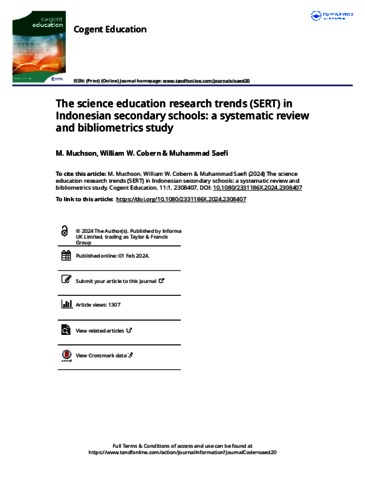 Muchson, M., Cobern, William W. and Saefi, Muhammad (2024) The Science Education Research Trends (SERT) in Indonesian secondary schools: A systematic review and bibliometrics study. Cogent Education, 11 (1). pp. 1-21. ISSN 2331186X