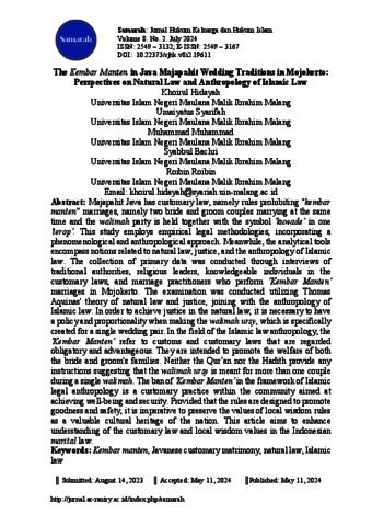 | Keywords: | Kembar manten, Javanese customary matrimony, natural law, Islamic law |