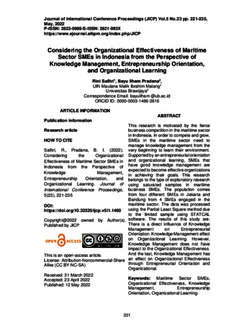 Safitri, Rini and Pradana, Bayu Ilham (2022) Considering the organizational effectiveness of maritime sector SMEs in Indonesia from the perspective of knowledge management, entrepreneurship orientation, and organizational learning. Journal of International Conference Proceedings (JICP), 5 (1). ISSN 26220989 (p.); 2621993X (e.)