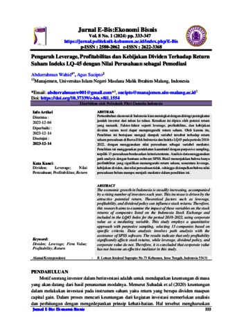 | Keywords: | Dividen ; Leverage; Nilai Perusahaan; Profitabilitas; Return |
