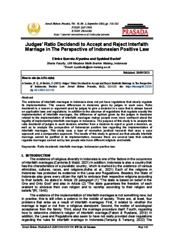 Judges’ ratio decidendi to accept and reject interfaith marriage in the perspective of Indonesian positive Law.