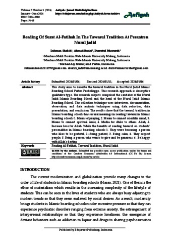 | Keywords: | Reading Al-Fatihah; Tawasul Tradition; Nurul Jadid |