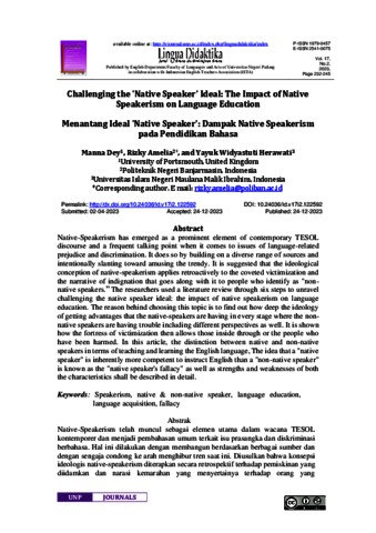 Lingua Didaktika: Jurnal Bahasa dan Pembelajaran Bahasa, 17 (2).