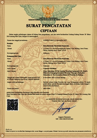 | Keywords: | pendidikan perdamaian, NU Kyai, keberagaman antaragama, pendidikan alternatif, Kasembon, Malang |