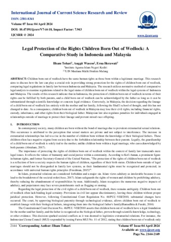 Legal protection of the rights children born out of wedlock: A comparative study in Indonesia and Malaysia.