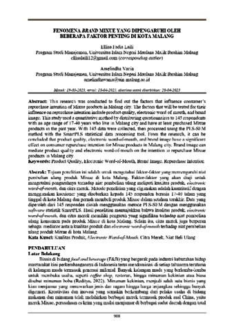This research was conducted to find out the factors that influence consumer’srepurchase intention of Mixue products in Malang city. The factors that will be tested for their influence on repurchase intention include product quality, electronic word-of-mouth, and brand image. This study used a quantitative method by distributing questionnaires to 145 respondents with an age range of 17-40 years who live in Malang city and have at least purchased Mixue products in the past year. With 145 data were collected,then processed using the PLS-SEM method with the SmartPLS statistical data processing tool. From the research, it can be concluded that product quality, electronic word-of-mouth, and brand image have a significant effect on consumer repurchase intention for Mixue products in Malang city. Brand image can mediate product quality and electronic word-of-mouth on the intention to repurchase Mixue products in Malang city