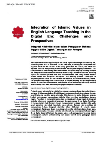 | Keywords: | Islamic Values; English Language Teaching; Digital Era |