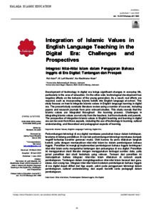 The development of technology in the digital era brings significant changes in everyday life, particularly in the area of education. On the other side, technological development has negative effects on the behavior of the young generation. As a result, real efforts are required, such as incorporating Islamic beliefs into English language at school. This study focuses at how to integrate Islamic values into English language learning in the digital era. This study conducts literature reviews using a number of sources, including papers and research journals from prior and recent relevant studies. This study reveals that the integration of Islamic values occurs in all phases of learning. The challenge in integrating Islamic values are not only from the teachers, but from students and parents. The prospective of integrating Islamic values in teaching and learning English in the digital era has a positive implication, including the use of technology in learning, cultural understanding, and theoretical and pedagogical aspects of learning.