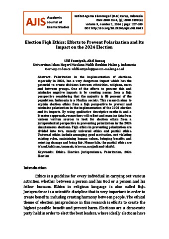Election Fiqh Ethics: Efforts to prevent polarization and its impact on the 2024 Election.