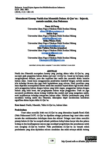| Keywords: | Naskh; Mnasukh; tafsir Al-Qur’an; hukum Islam |