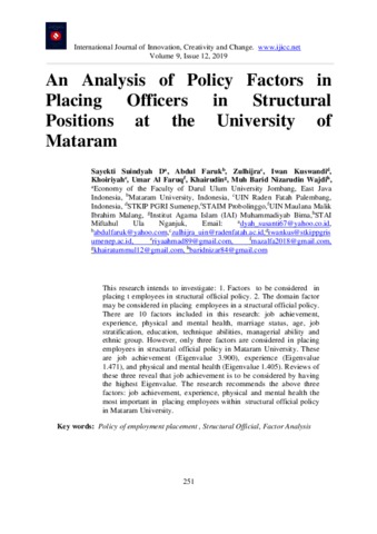 An analysis of policy factors in placing officers in structural positions at the University of Mataram. (deposited 09 Apr 2020 16:18)