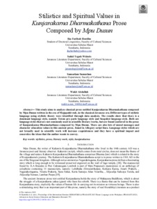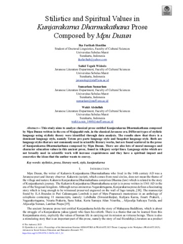 Stilistics and Spiritual values in Kunjarakarna Dharmakathana Prose Composed by Mpu Dusun.