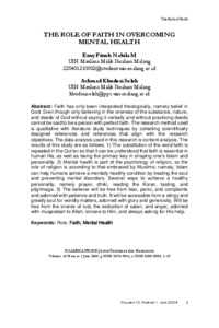Faith has only been interpreted theologically, namely belief in God. Even though only believing in the oneness of the substance, nature, and deeds of God without saying it verbally and without practicing deeds cannot be said to be a person with perfect faith. The research method used is qualitative with literature study techniques by collecting scientifically designed references and references that align with the research objectives. The data analysis used in this research is content analysis. The results of this study are as follows: 1) The substitution of the word faith is repeated in the Qur'an so that it can be understood that faith is essential in human life, as well as being the primary key in shaping one's Islam and personality. 2) Mental health is part of the psychology of religion, so the role of religion is according to that embraced by Muslims; namely, Islam can help humans achieve a mentally healthy condition by treating the soul and preventing mental disorders. Several ways to achieve a healthy personality, namely prayer, dhikr, reading the Koran, fasting, and pilgrimage. 3) The believer will be free from fear, panic, and complaints and adorned with patience and truth. It will be accessible from a stingy and greedy soul for worldly matters, adorned with glory and generosity. Will be free from the snares of lust, the seduction of satan, and anger, adorned with muqarabah to Allah, sincere to Him, and always asking for His help.