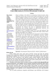 Penerapan manajemen risiko pembiayaan pada perusahaan fintech pegadaian syari’ah.