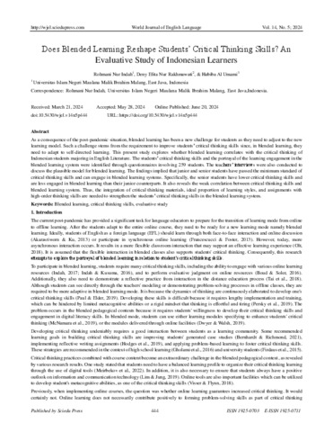Does Blended Learning Reshape Students’ Critical Thinking Skills? An Evaluative Study of Indonesian Learners.